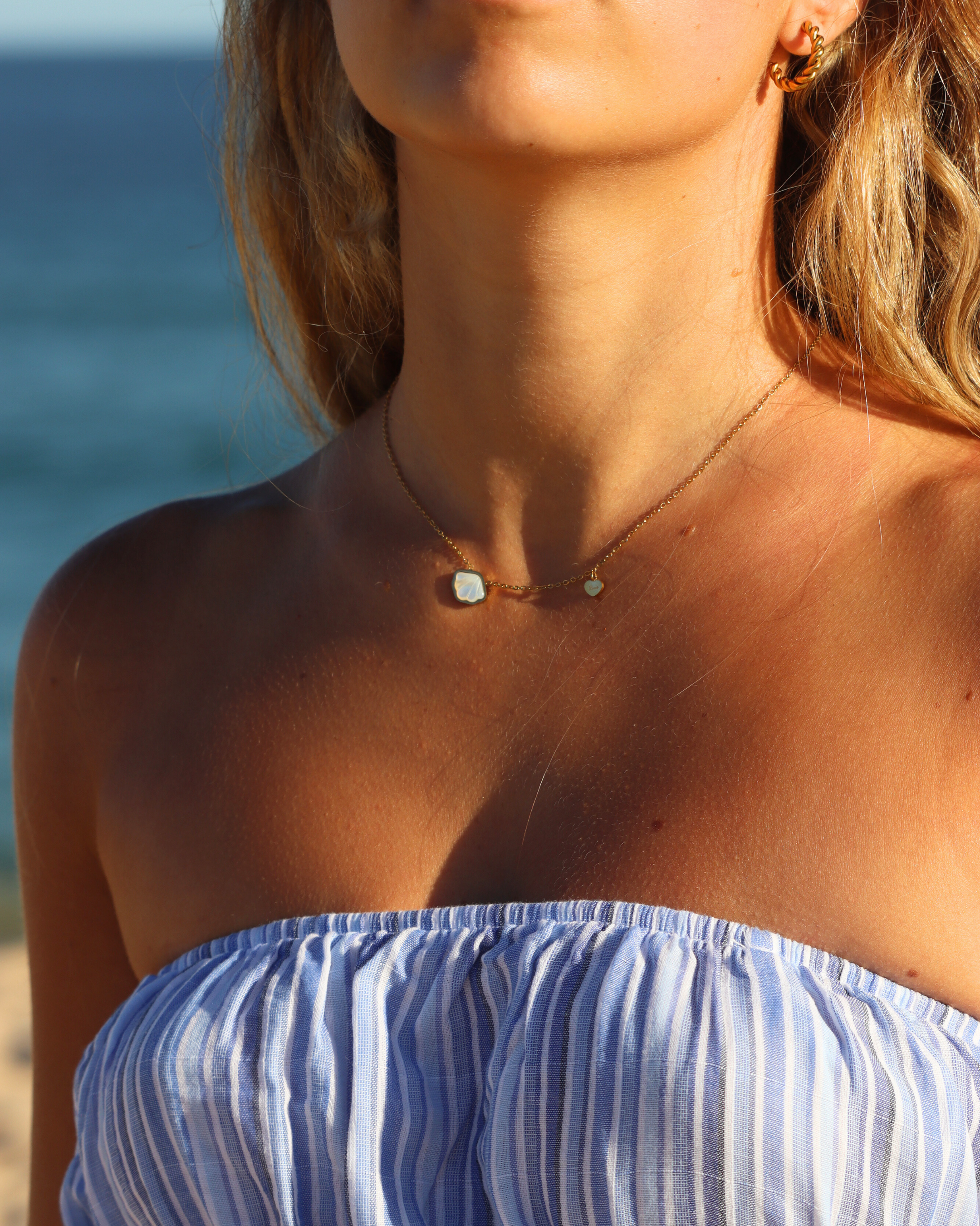 The Pearled Shell Necklace features a lustrous pearl nestled within a shell pendant. This piece captures the natural beauty of the sea, offering elegance with a hint of oceanic mystery.