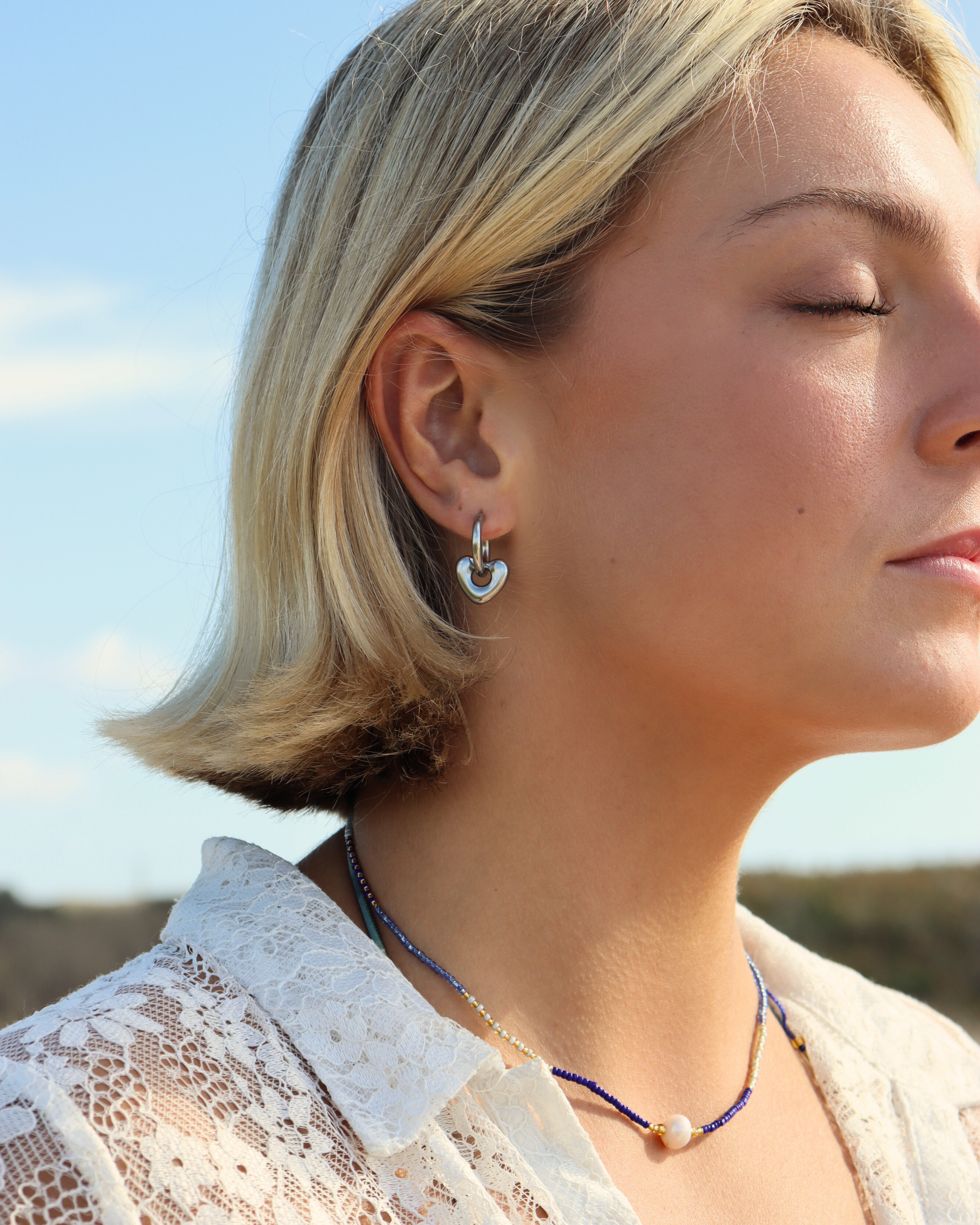 Romantic and playful, the Sweetheart Dangle Earrings feature heart-shaped designs that sway with every step. Perfect for adding a touch of love to your everyday look or a special occasion.
