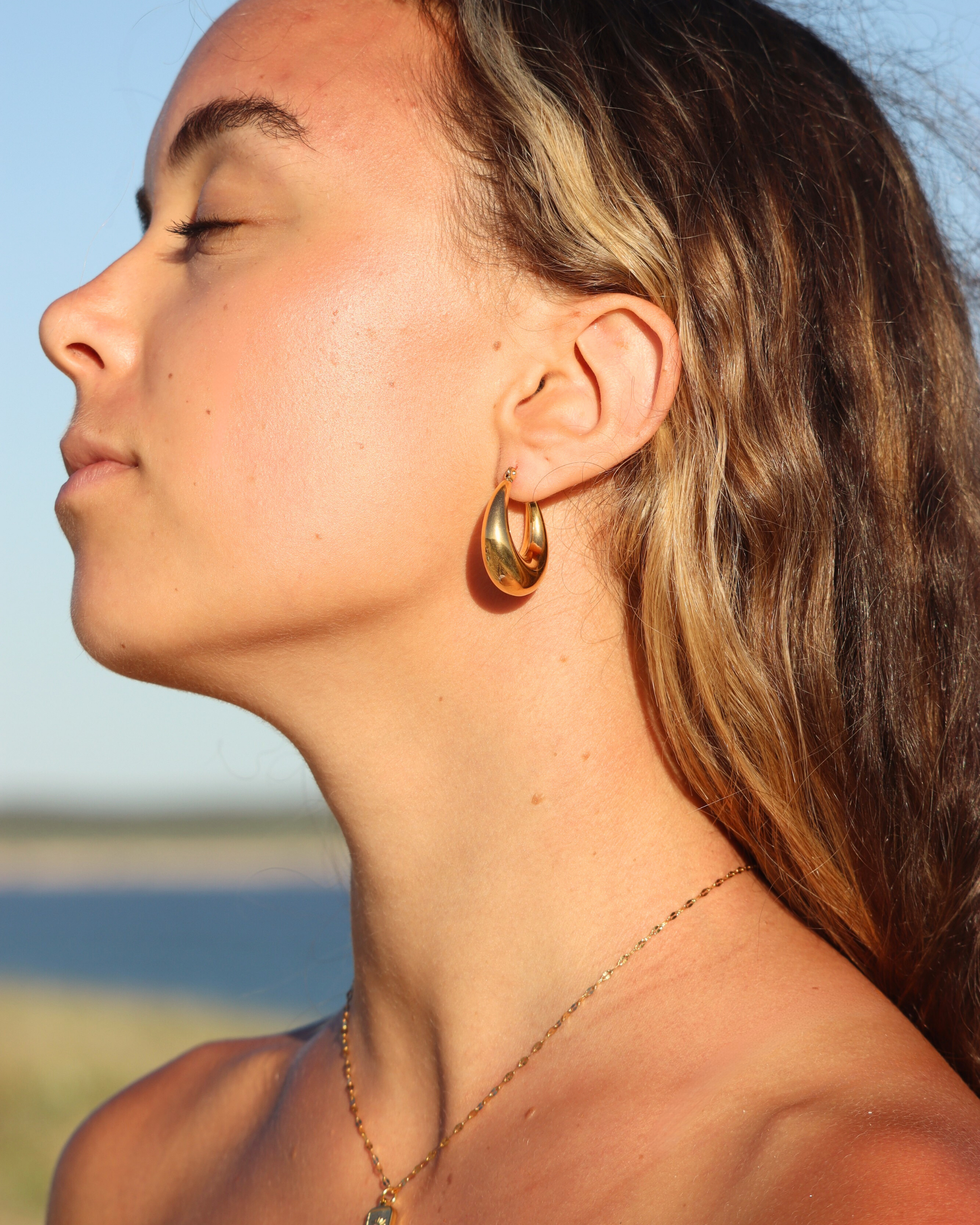 Radiate confidence with the Solara Thick Hoops. Bold, golden, and endlessly chic, these hoops offer a statement look while remaining lightweight enough for daily wear. Crafted with 18k gold PVD, they’re perfect for bringing sunshine to any outfit.